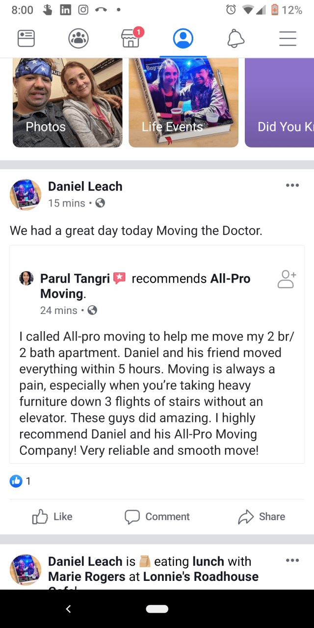 Daniel J Leach Jr Started in the moving industry while in high school during his senior year in 1994 while working for U-haul, he then went on to work with several professional moving company’s learning the moving trade over several years going coast to coasts East to West, North to South across America doing several thousand moving Jobs from moving the family’s to moving company’s across town, to moving entire office complex across country before founding the Owner Operator All Pro Moving Company.